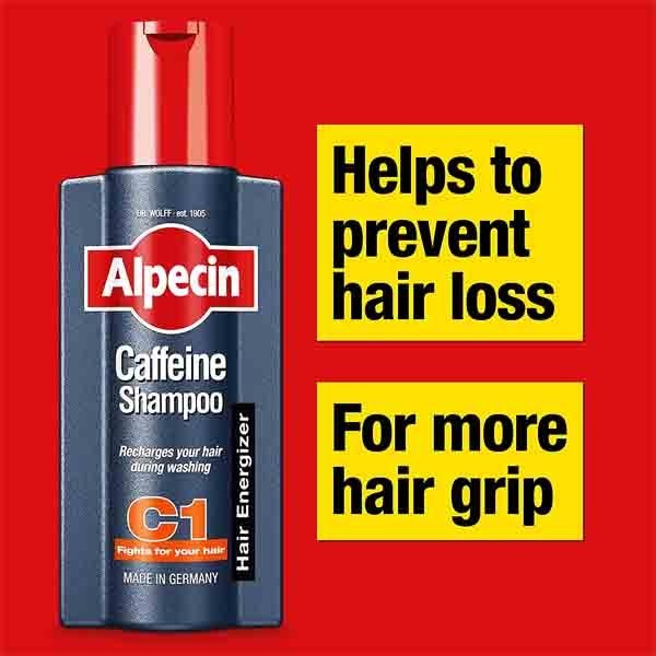 - HELPS TO PREVENT HEREDITARY HAIR LOSS With its unique galenic formula and its optimal caffeine dosage (and other potent active ingredients) Alpecin Caffeine Shampoo C1 supports natural hair growth.